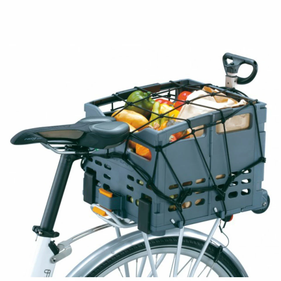 Ce filet Cargo en nylon Ă©lastique s’attache au TrolleyTote™ ou aux types de paniers de Topeak pour garder vos affaires en sĂ©curitĂ© quand vous pĂ©dalez. S’attache au porte-bagages ou au panier avec des crochets recouverts et durables.