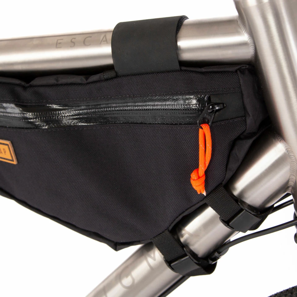 La sacoche de cadre Restrap permet au cycliste de confortablement augmenter leur charge de transport elle est idéale pour la randonnée, le cyclotourisme et le vélotaf.